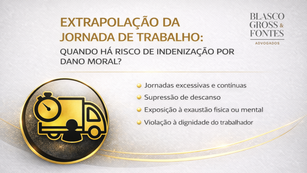 A chamada jornada extenuante, portanto, não configura dano moral por presunção, tratando-se de hipótese que demanda prova concreta de abalo à esfera existencial do trabalhador, não bastando a mera extrapolação dos limites legais de jornada ou a existência de horas extras habituais.